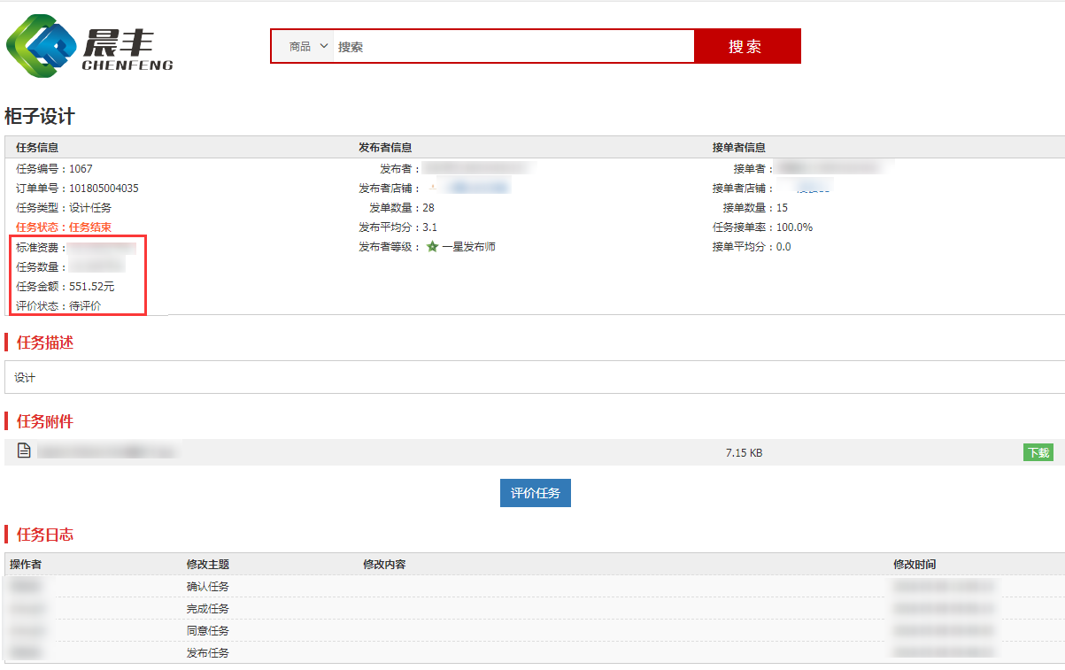 任务的收费除了按照数量和定价计算外,任务没有被确认完成时,设计师都可以在晨丰爱家网商城平台修改任务价格,操作步骤如下:
