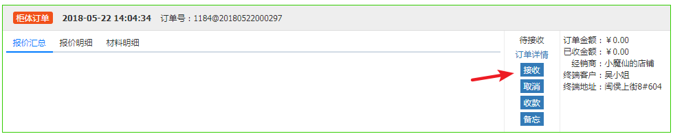 接收或者取消时,状态会已微信推送的信息,推送给门店告知订单的接收的情况;