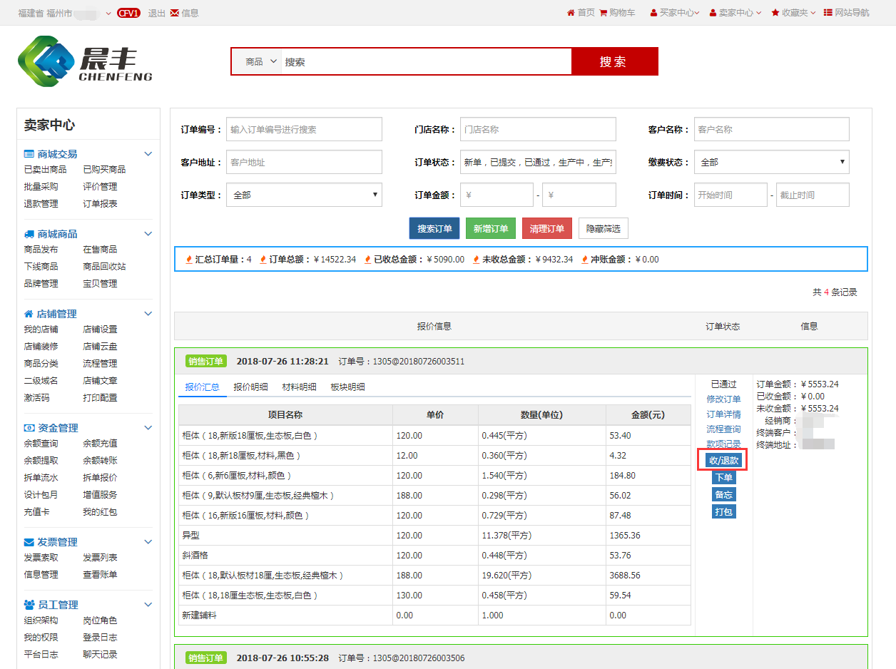 本章节主要介绍,在订单管理界面如何对订单进行收款和退款