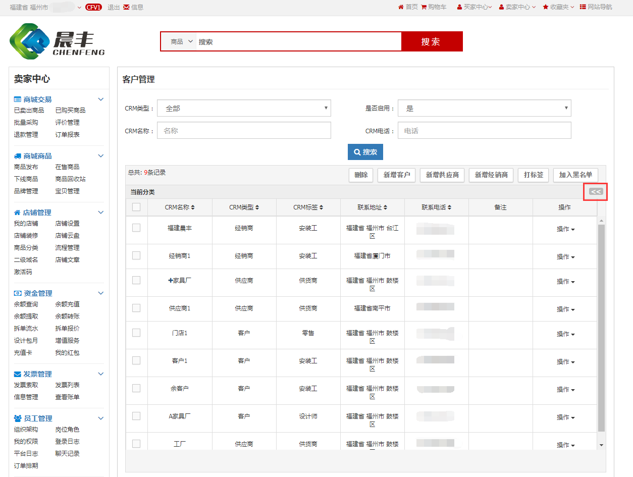 用户可通过标签对客户和供应商进行快速查询,点击相应的标签可查询该标签下的客户、经销商和供应商