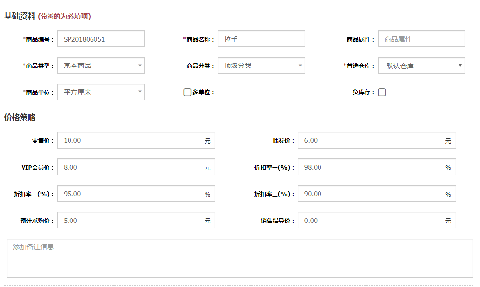 其他的价格策略,相册开放,库存预警,期初设置的商品信息操作跟基础商品的操作一致,可以参照新增基础商品的操作;