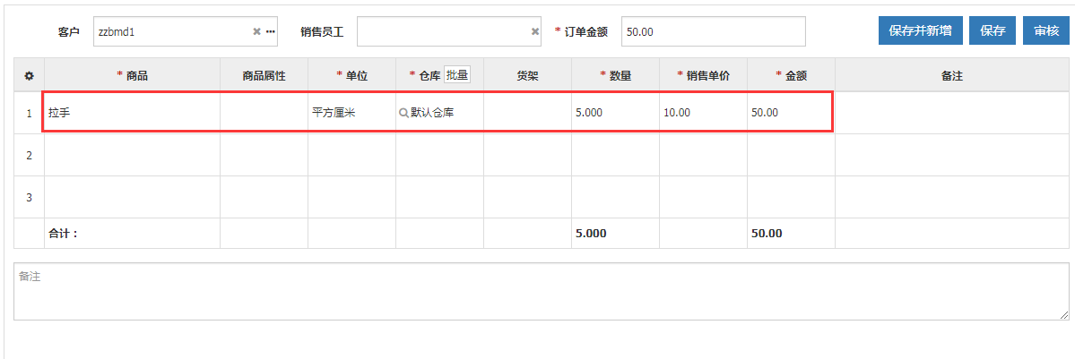 完善信息后,点击保存,订单新增成功,但状态为未完成