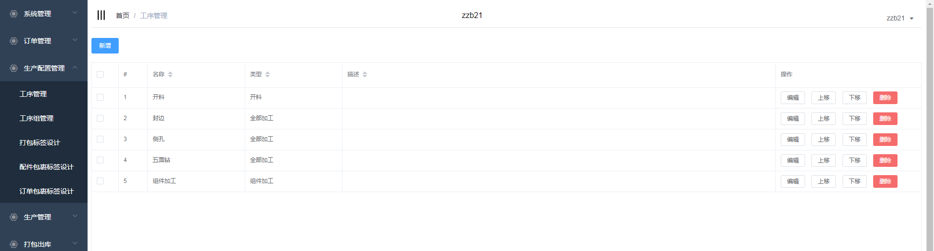 选择工序,点击编辑,在工序管理页面对工序进行编辑