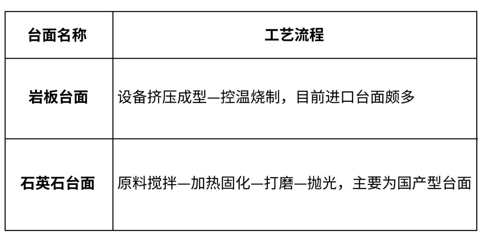 (2)工艺不同:2款台面制作工艺流程存在着不同之处