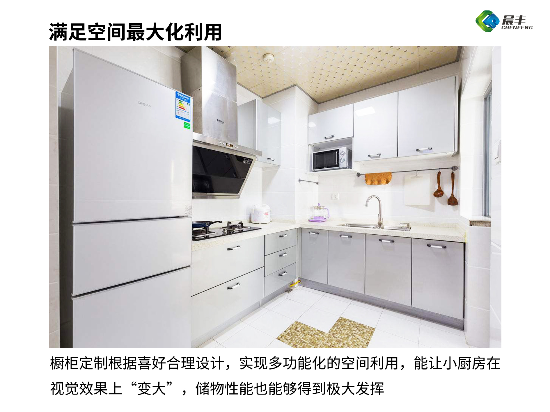 这对小户型家庭来说是亟待被get的点,小户型的关键就在于“小”字,这使厨房空间也有了很大局限,橱柜定制根据喜好合理设计,实现多功能化的空间利用,能让小厨房在视觉效果上“变大”,储物性能也能够得到极大发挥。